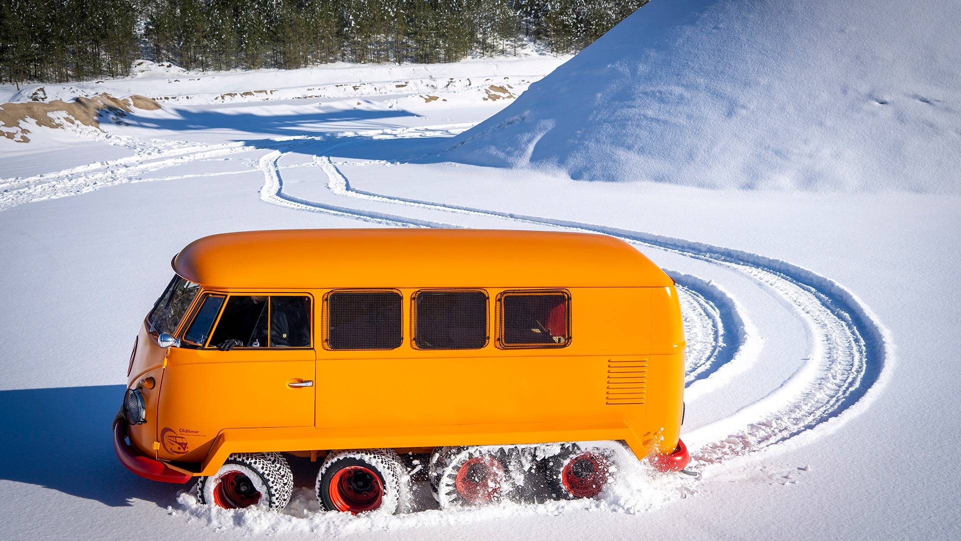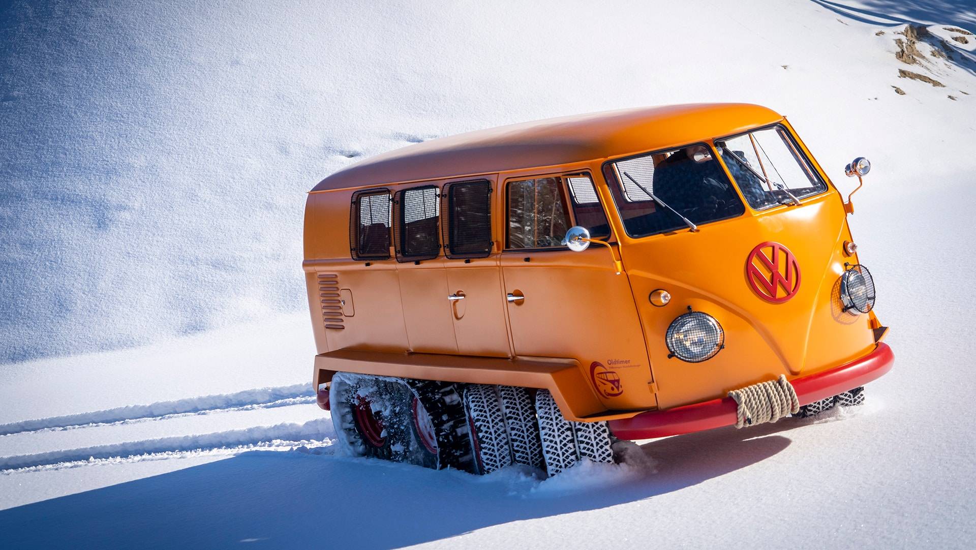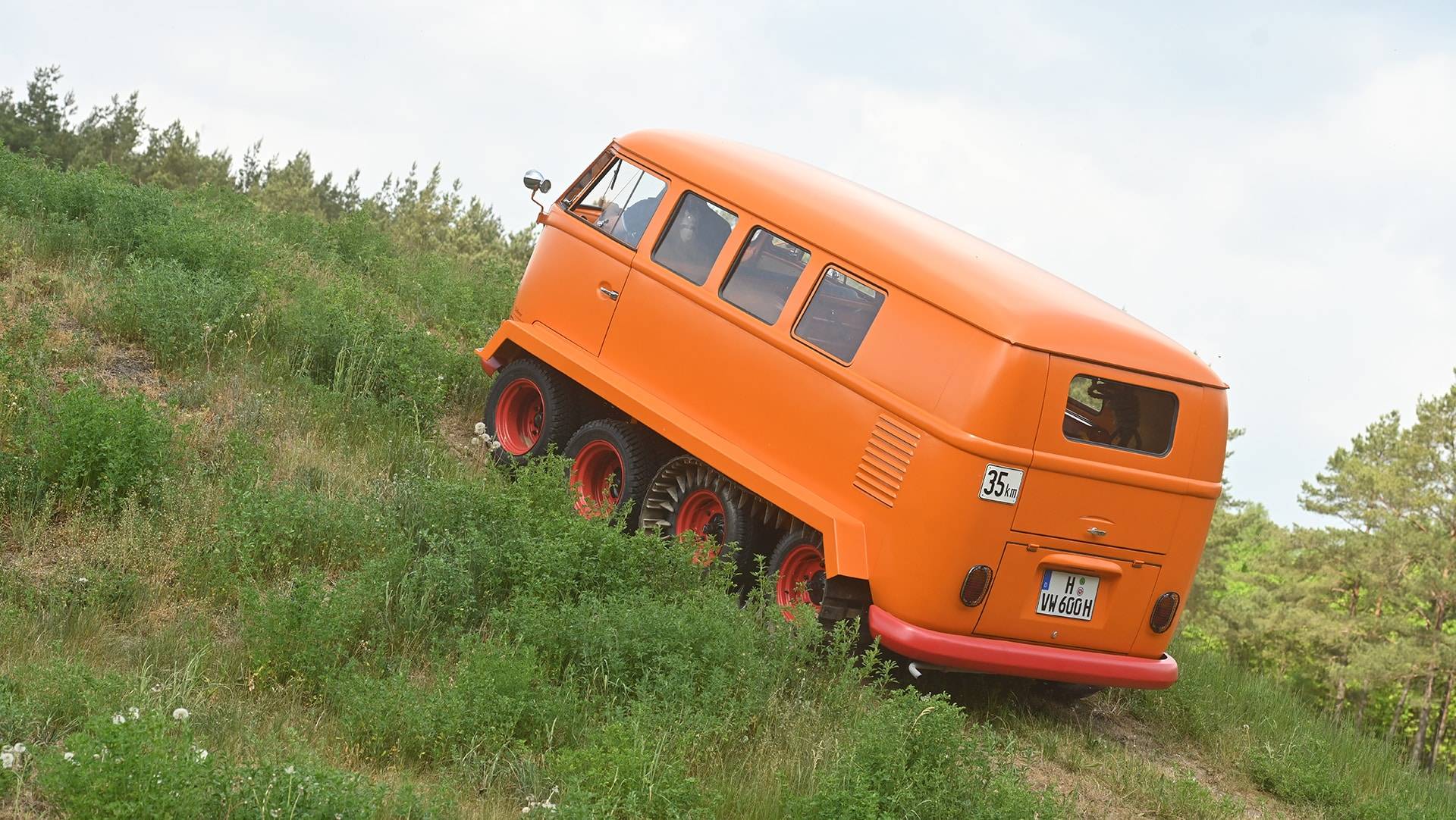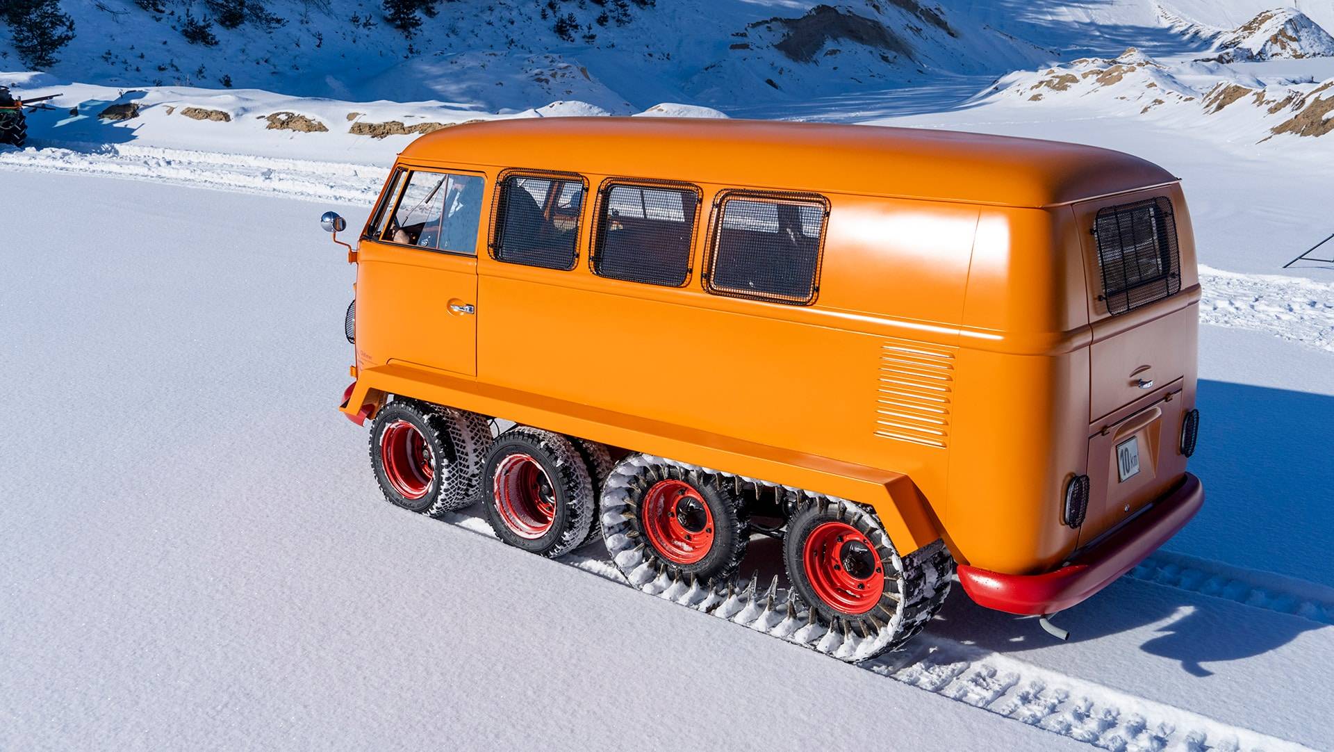 Bilen hittade först en köpare i Österrike och efter några år som vanlig transportbil hamnade den i VW-mekanikern Kurt Kretzners händer. Han byggde om bussen till en fyraxlig terrängbil. De två bakre axlarna utrustades med larvfötter medan de två främre axlarna gjordes styrbara och fick dubbla hjul monterade. Resultatet? Världens kanske mest terrängfähiga VW-buss.