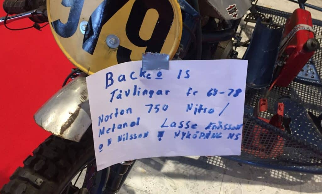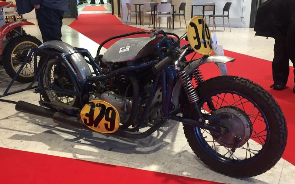 Det började onekligen bra om man tycker om äldre hojar. Redan i entrén stod denna Norton sidvagnscross/backtävlingshoj. Se mer info nedan.