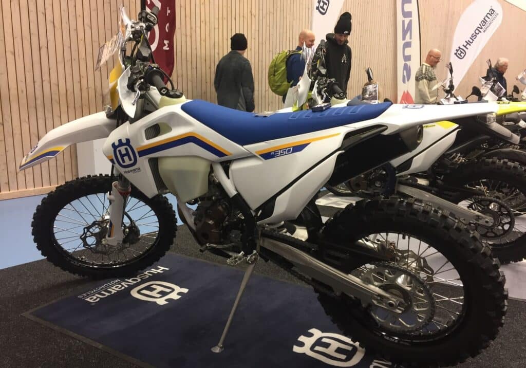 Mer Husqvarna. Den här ser lite mer ut som de svensktillverkade husqvarnor man såg på 70- och 80-talet.Vad vore en motorcykelmässa utan anrika BMW?Stor, fet glidare från BMW. Nej – boxermotorn släpper man inte. Här på 1800 kubik. Notera den kromade och utanpåliggande kardanaxeln, Tur att V-jeansen inte är moderna idag…Även Italienska Benelli existerar fortfarande.