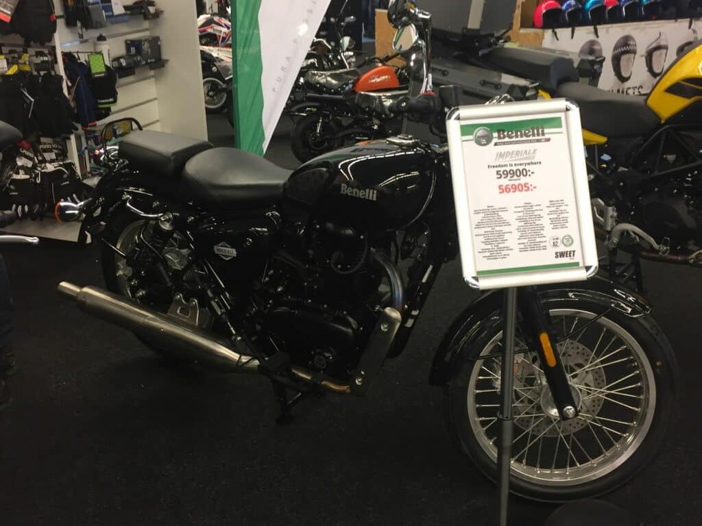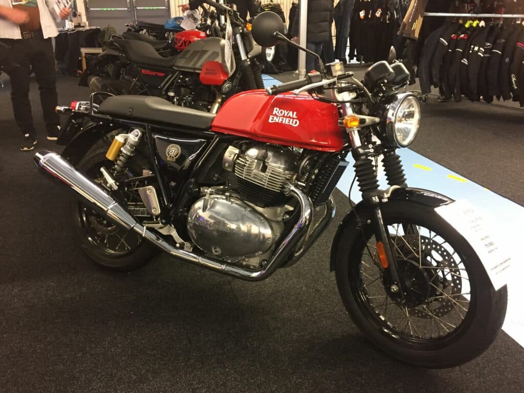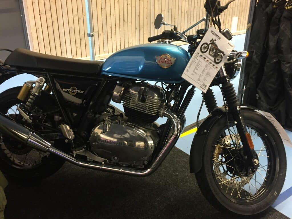 Hade du 56 905 riksdaler på fickan kunde du blivit ägare till en Benelli Imperiale 400 (374 cc). Får dessutom köras med mc-kort, klass A2 (max 35 Kw).”Made lika gun” Royal Enfield började tillverka motorcyklar redan 1901. Så här ser en Continental GT 650 ut från 2021 som nu äntligen skulle få chansen att få en ägare. Mässpris: 75 000:-Royal Enfield Interceptor. Kanske världens första superbike när den dök upp på 60-talet, Årets version på bilden har en motor på 650 kubik och beskedliga 47 hästkrafter vid 7150 varv. Originalet var på 736 kubik och gav 60 hästkrafter vid 6000 varv.Motorkåpan har tydliga rötter från det förgångna. Så här såg Royal Enfields registerkåpor ut redan på 40-talet. Och satt på andra sidan,