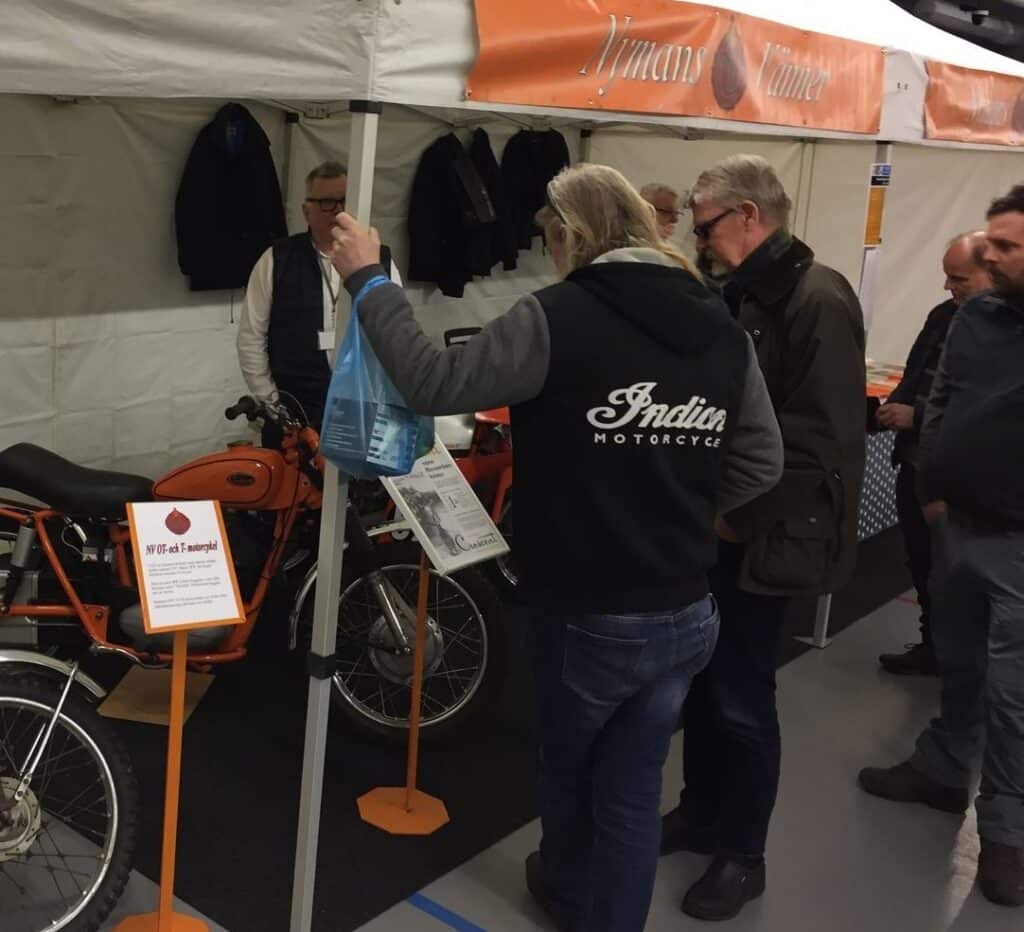 Men vad har man gjort med logotypen? För undertecknad som kör originalet Royal Enfield från 40-talet ger denna logotyp vibbar som leder tankarna till slutvinjetten på Fem myror är fler än fyra elefanter när den tecknade elefanten ringlar ihop sin snabel för ett sista trumpetande.Men nu får ni väl ändå bestämma er!Här servades endast äkta vara! Nymans vänner var på plats och i deras monter fanns ingen plast.”Jag kör visserligen Indian, men…” Nymans vänners monter var välbesökt av flera kategorier knuttar.