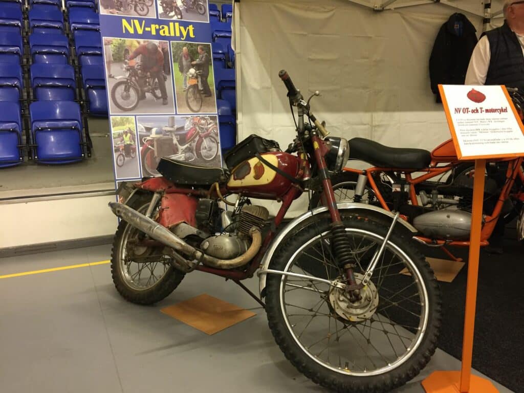 Så såg det ut när farfar var ung! Denna NV 12 S på 125 kubik var vässad upp till 10 hästkrafter. Treväxlad låda. Missa inte NV rallyt i Uppsala den 10 juni!En transformer? Nej det är en Ducati. Lite oväntat med en V4!Kisttank, lutande motor och uppdragna rör! I Strul Mcc:s monter fanns det choppernostalgi.Nav till Puch Dakota? Nej, bakhjulet på en BMW med enkelsving.