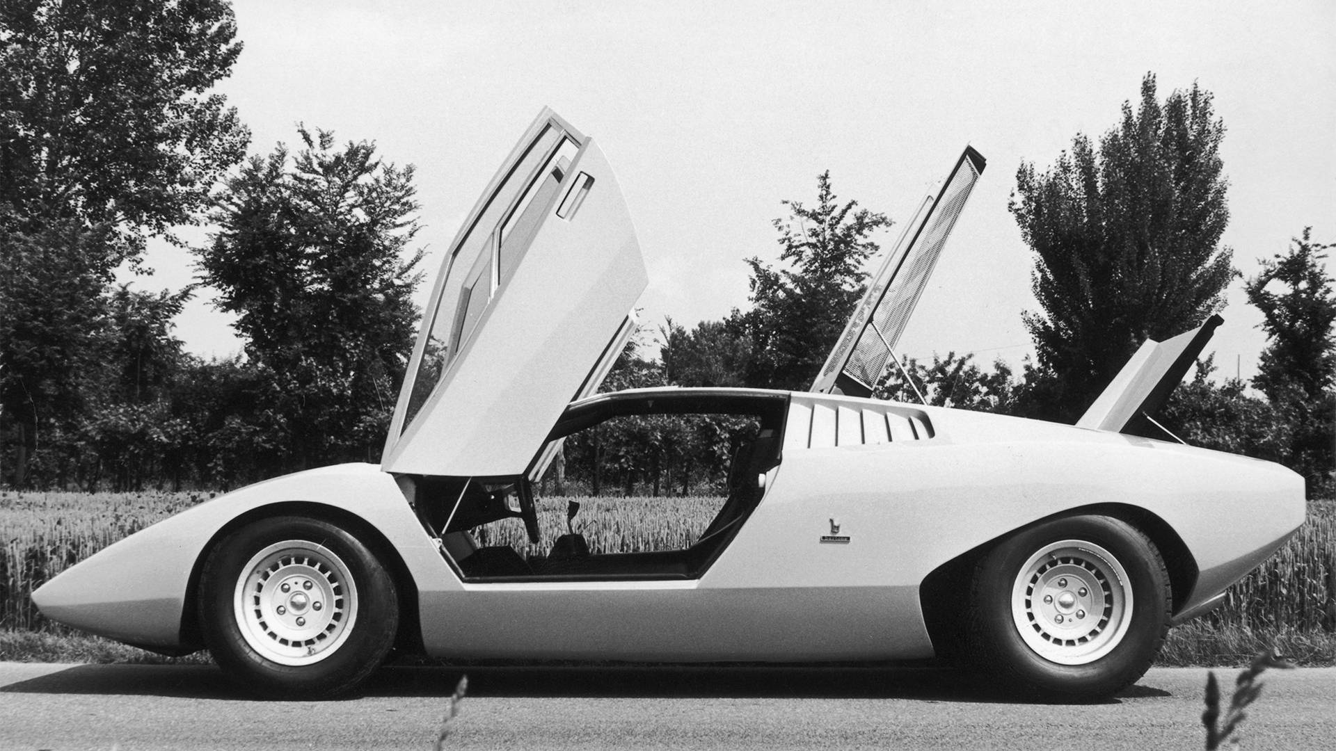 Lamborghini LP500, den första prototypen av det som kom att bli Countach. Bilden tagen cirka 1972.