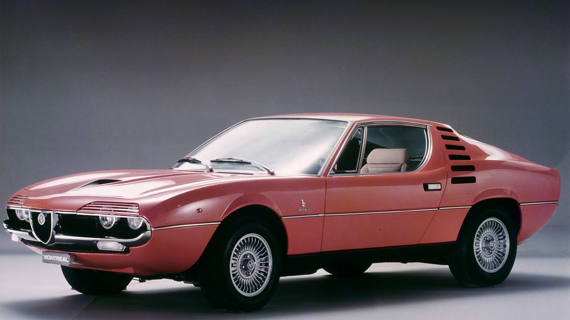 Alfa Romeo Montreal 2+2:a med 2,6-liters V8-motor. Byggdes 1970–1977.