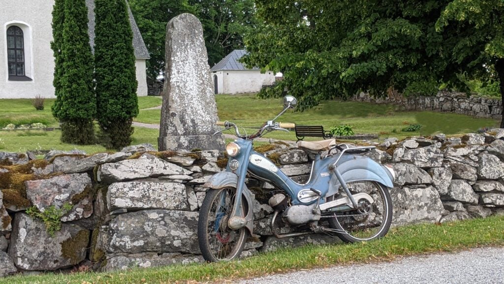 Sommarmånaden juli har kommit. Denna gång parkerar vi en Victoria Vicky från 1961 vid milstenen.