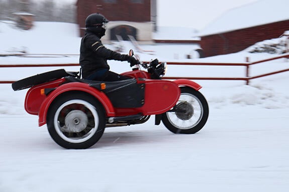 Joacim Jutemalm bjuder Classic Motor på en snöig åktur i en Dnepr MT16 med sidvagn.