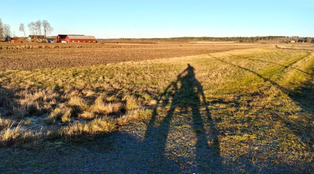 Sol och blå himmel! Idag – på årets kortaste dag – dök den då äntligen upp: solen. En mopedtur i solskenet blev oundviklig! (bilden är tagen klockan 12:45)