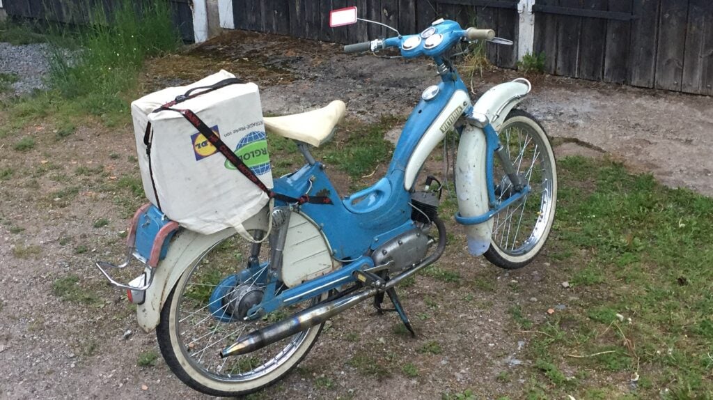 Häromdagen skulle jag hämta ett paket hos ett ombud. Så här års är det dessutom dags för att väcka upp sina fordon efter vinterdvalan och då föll valet på ”Vickan” – min Victoria Luxus från 1959. Vid ombudet finns en bensinmack så då var det läge att tanka upp Vickan med lite färsk bensin.