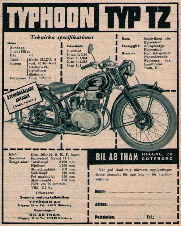 Fråga: Hej. Jag äger en FZ Typhoon med Zündappmotor, 200 cc och 7 hk. Motorcykeln tillverkades av Svenska motorcykelfabriken i Göteborg år 1953. Vissa delar saknas, vissa är omlackerade, dock är motorn i nyskick och har endast gått 77 mil. Min fråga är, hur vanlig denna mc är, om den är eftertraktad samt ett uppskattat värde.
