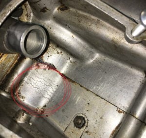 Fråga: Tjenare! Jag håller på att greja lite med en Monark M300 med CZ150cc motorn från 1950. Igår när jag skulle lös med förgasaren för rengöring så upptäckte jag denna ”bristning” eller vad man nu kan kalla det i motorblocket. Jag blev bara lite fundersam på vad det kan bero på och om det är … Fortsätt läsa Är det sprickor i motorblocket?