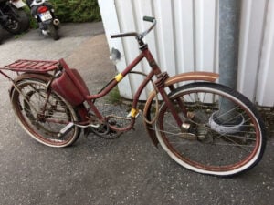 Fråga: Vad är detta för modell och årsmodell?Den skall få en fläktkyld tvåväxlad Sachsmotor och aphängstyre, men söker en tidsenligsadel. Mvh Butcho Svar: Hej Butcho! Du har en Crescent Autoped 1118 från 1955. Motorn var original en 40cc NV-motor och modellen fanns bara med remdrift. Modellen tillverkades i två år, 1955-1956. Original hade Autopeden en … Fortsätt läsa Vad är detta för modell och årsmodell?