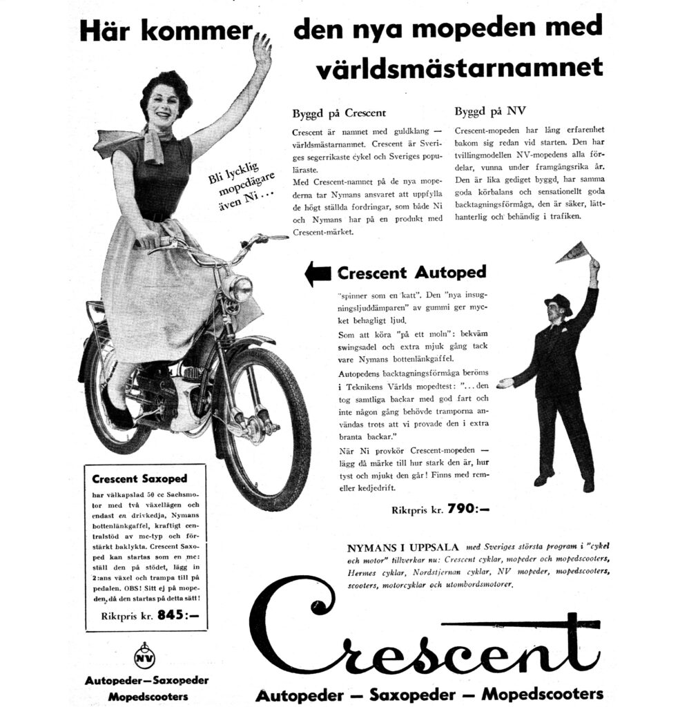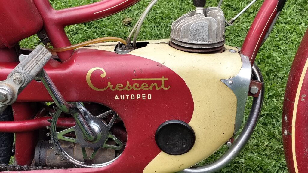 Din Autoped bör då vara från 1955 eftersom ramnumret börjar med ”N5”. I så fall borde den heta Crescent Autoped och ha en paddljuddämpare under motorn vilket var två ändringar som gjordes på 1955 års modeller.