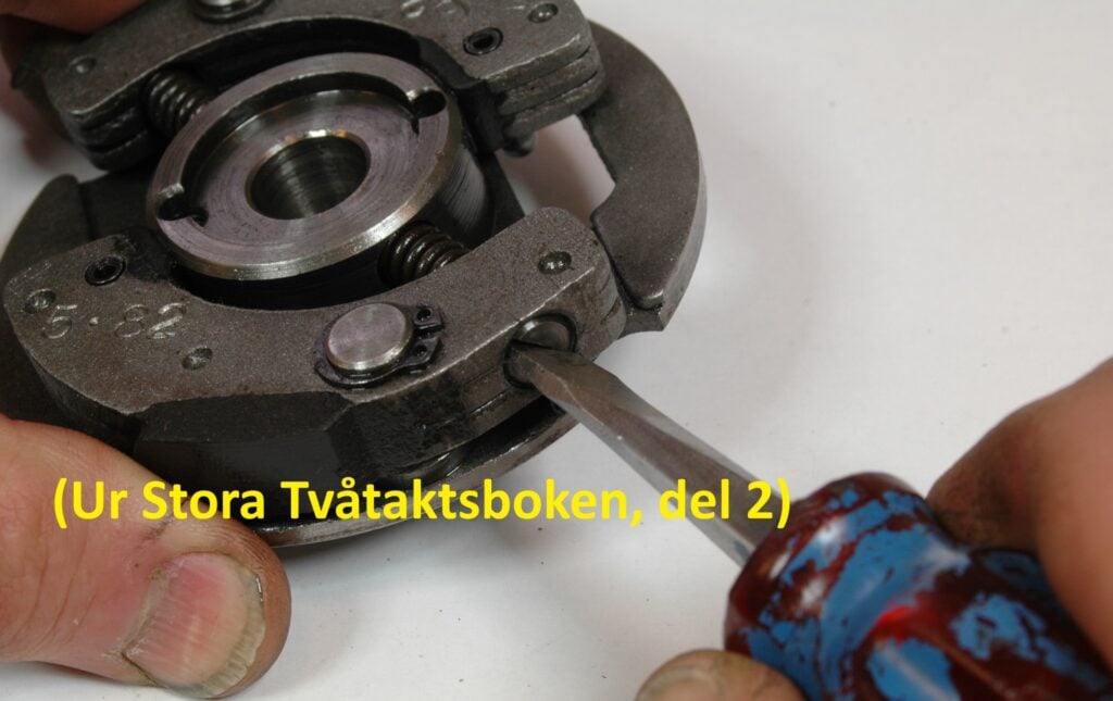 På drivbackarna finns även en justerskruv där man kan ändra på fjäderspänningen så att kopplingen tar vid högre eller lägra motorvarv, men den justeringen bör inte påverka slirningen på högre varv. I Stora Tvåtaktsboken, del 2, finns en komplett reparationsanvisning för Puch Maxi-motorn (och 29 andra motorer). Boken är tillfälligt slut hos tryckeriet, men vi har ett par exemplar kvar på redaktionen. Hör av dig på classic@classicmotor.se om du är intresserad.