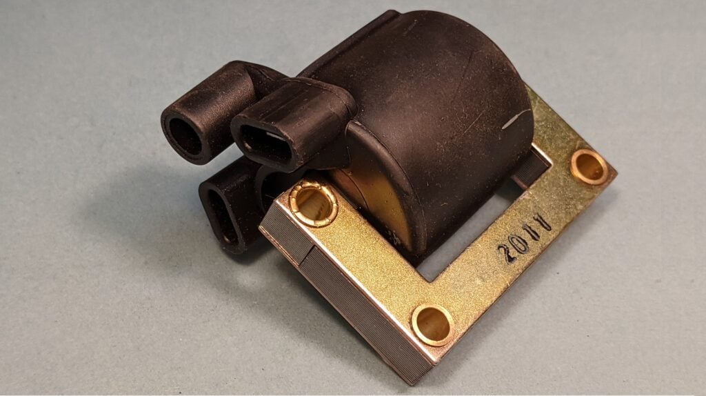 Men att driva en 12-volts tändspole borde därför fungera bra. Det man kan kolla är att det inte uppstår stark gnistbildning vid brytarna eftersom de också ska ta hand om strömmen från ljusspolen.