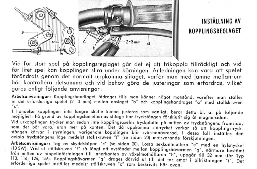 Fråga: Hej. Jag har en Fram Clipper 1964 års modell med treväxlad handväxel. Jag vet inte vilken av vajrarna från handtaget som går till vilken växel nere på motorn. Jag har köpt nytt växelhandtag och nya vajrar. Också tips om injustering vore fint. Jag läser Stora renoveringsboken men hittar inget där.