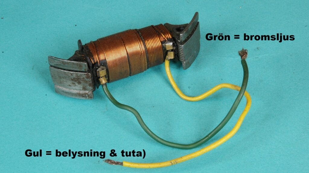 - Det fanns ljusspolar med två lindningar där den gröna kabeln från spolen är till bromsljuset (Se bild nedan).