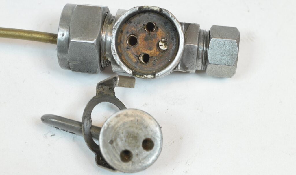 Fråga: Hejsan. Jag har en Monark Monarped M36 ifrån 1955 som har en bensinkran som vägrar stänga av sig. Hur ser anslutningen till kranen ut? Är det via en slang till en kran?
