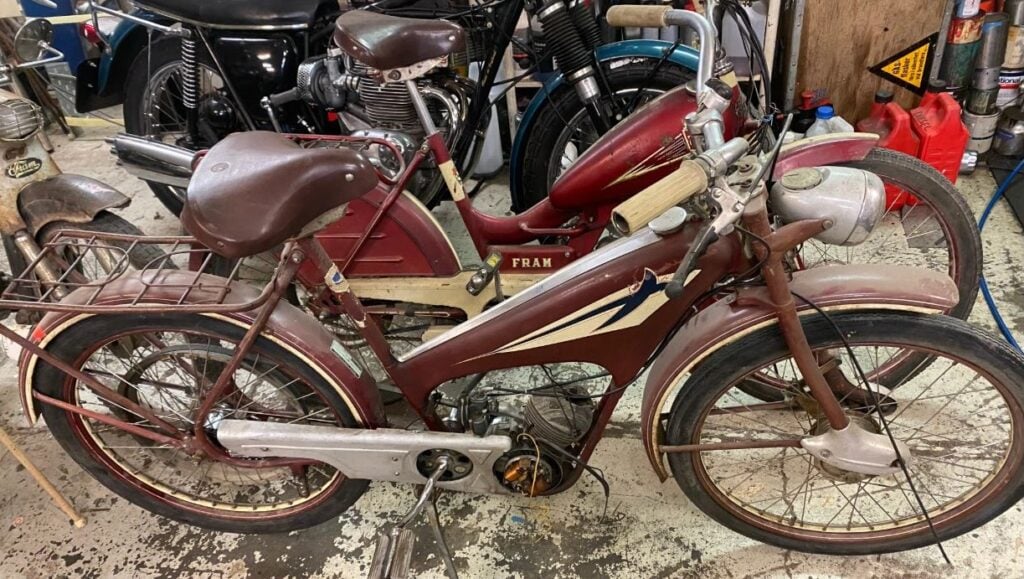 Men i denna länk ser du hur avgaseriet ser ut. Ett tips: på min reklambild från 1955 är det en framgaffel av webbmodell medan din har en bottenlänksgaffel. Man kan inte alltid lita på reklambilder – eller så har någon bytt ut din gaffel mot en annan svalangaffel.