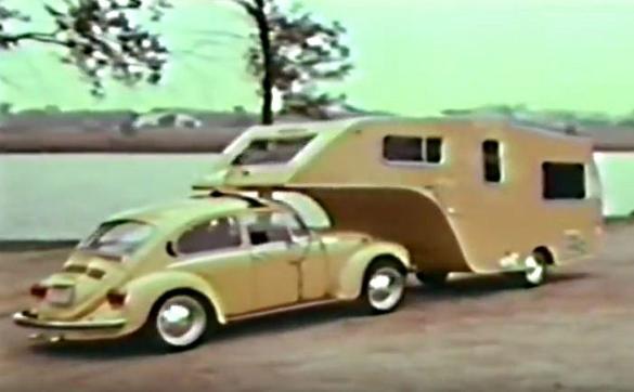 1974 tillverkade det amerikanska företaget International Travel Trailer Inc denna skapelse som ska hakas fast i en kula på taket av en folkvagn. Namnet på trailern var ”Fifth Wheel Trailer”. Ingen visste riktigt om det gjordes fler än den på videon eftersom ingen sett någon i verkligheten. 40 år senare kör en kille förbi en