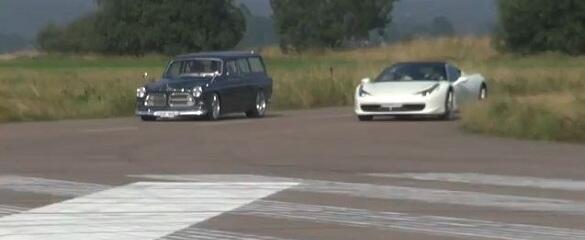 Inte har väl en Amazonkombi någon chans mot en Ferrari – eller har den det? (Klicka på trekanten i bilden så startar filmen) Av: Jim Lundberg