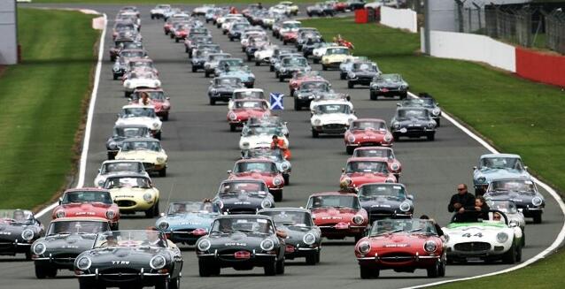 Över 1 000 Jaguar E-Type kom till den klassiska racerbanan Silverstone i England för att fira 50 årsjubiléet.