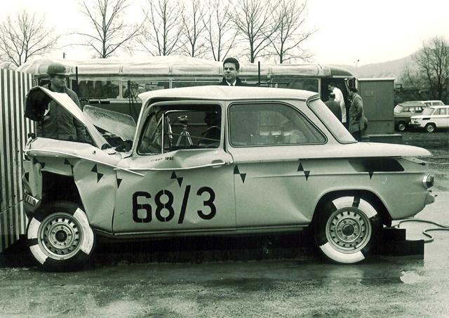 Redan på 1950-talet utförde NSU regelrätta krocktester.